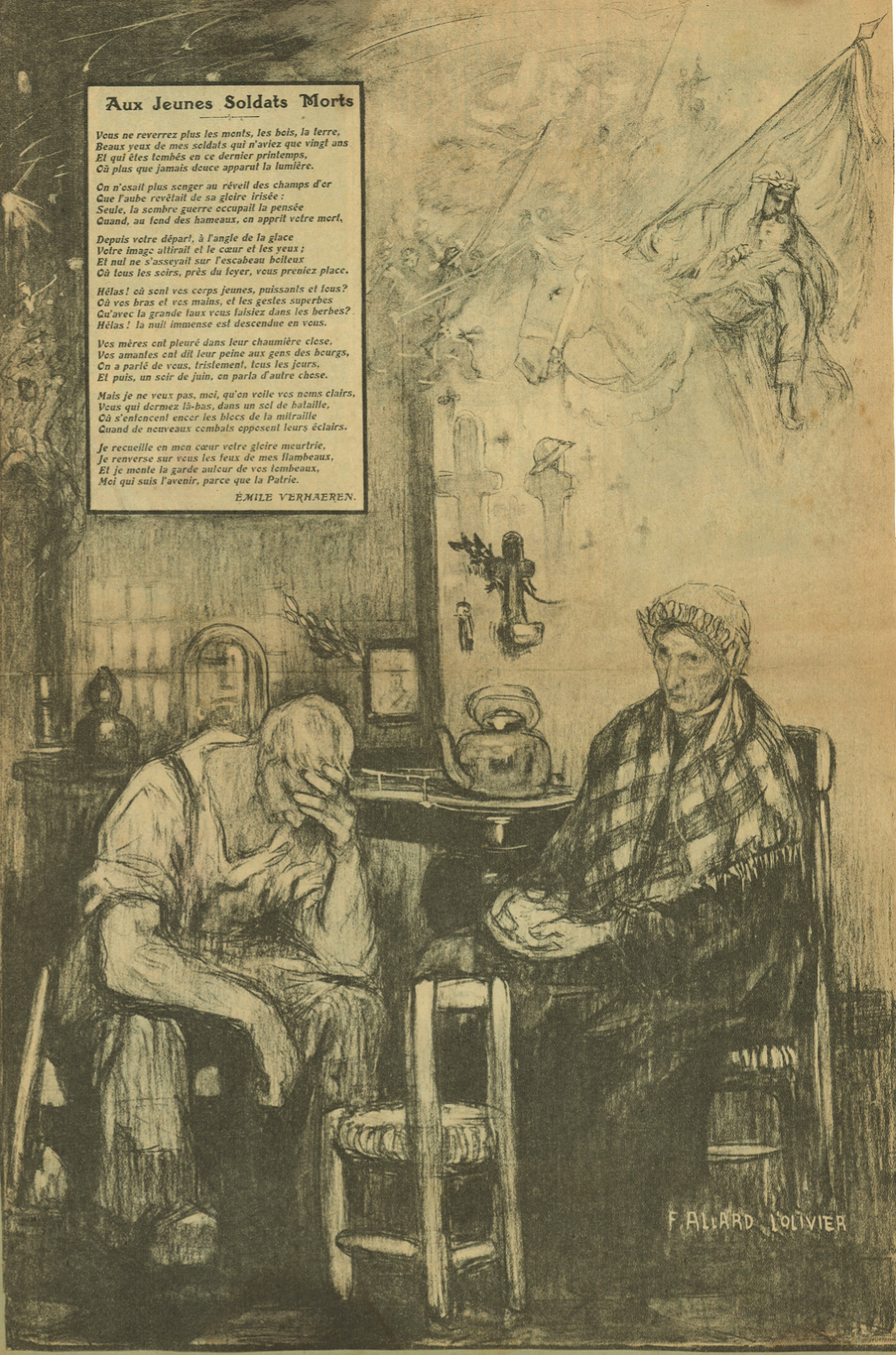 Page centrale des Annales; Illustration du poème de Verhaeren Aux Jeunes Soldats morts