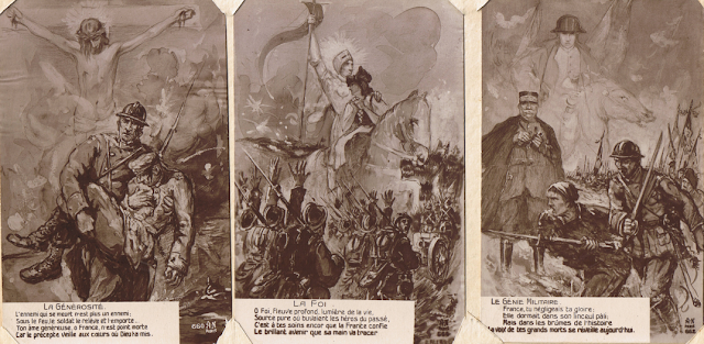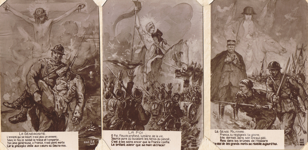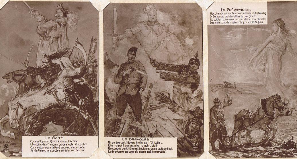 Fin 1914 et en 1915, le travail de Fernand est tourné vers la guerre : dessins patriotiques dans "Les Annales", cartes exaltant les vertus des soldats, portraits de militaires.